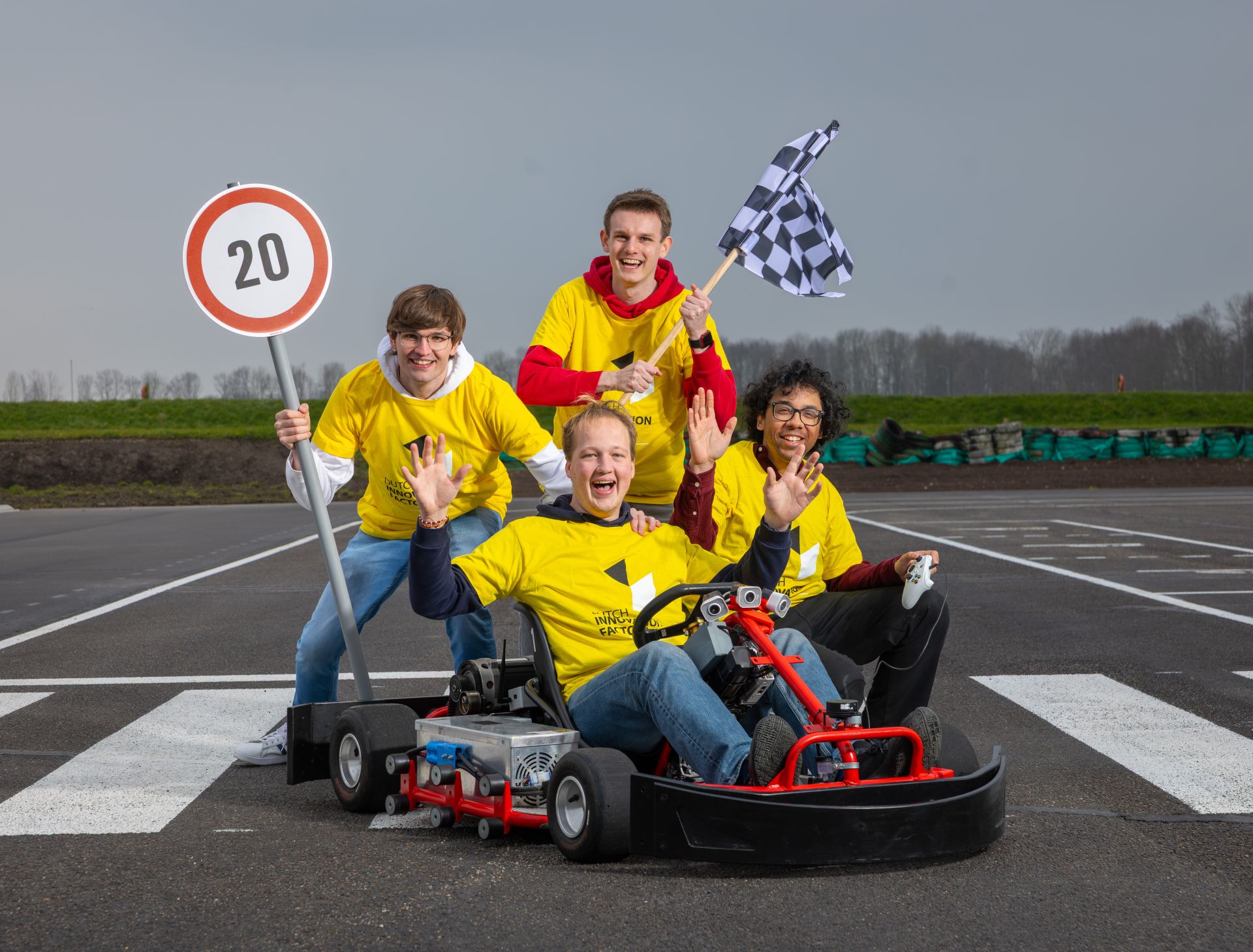 Hun grootste voordeel? Hun mix van expertise! Dankzij hun verschillende studieachtergronden kunnen ze problemen vanuit diverse perspectieven benaderen en creatieve oplossingen bedenken. Bovendien hebben ze een replica-kart op hun hogeschool, waarmee ze testen kunnen uitvoeren en hun voertuig efficiënt kunnen finetunen.